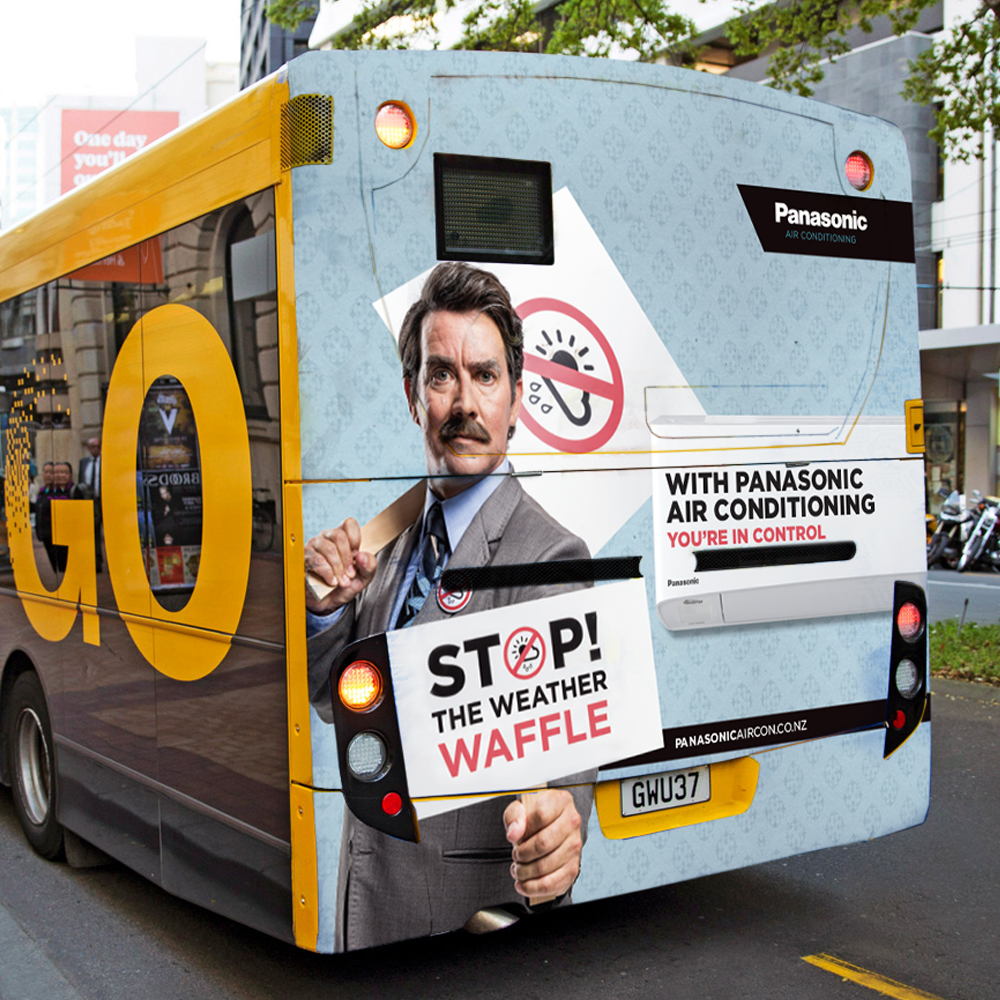 We all know kiwis love talking about the weather. To highlight this national obsession we created the character Ray Morningside an ex-weather presenter who is on a crusade to stop Weather Waffle. After fitting a Panasonic air con unit Ray realised he no longer needed to obsess about the weather he was now in complete control of his environment. He started the campaign to Stop the Weather Waffle, the ad & supporting creative follow his journey to free people from weather obsession.
