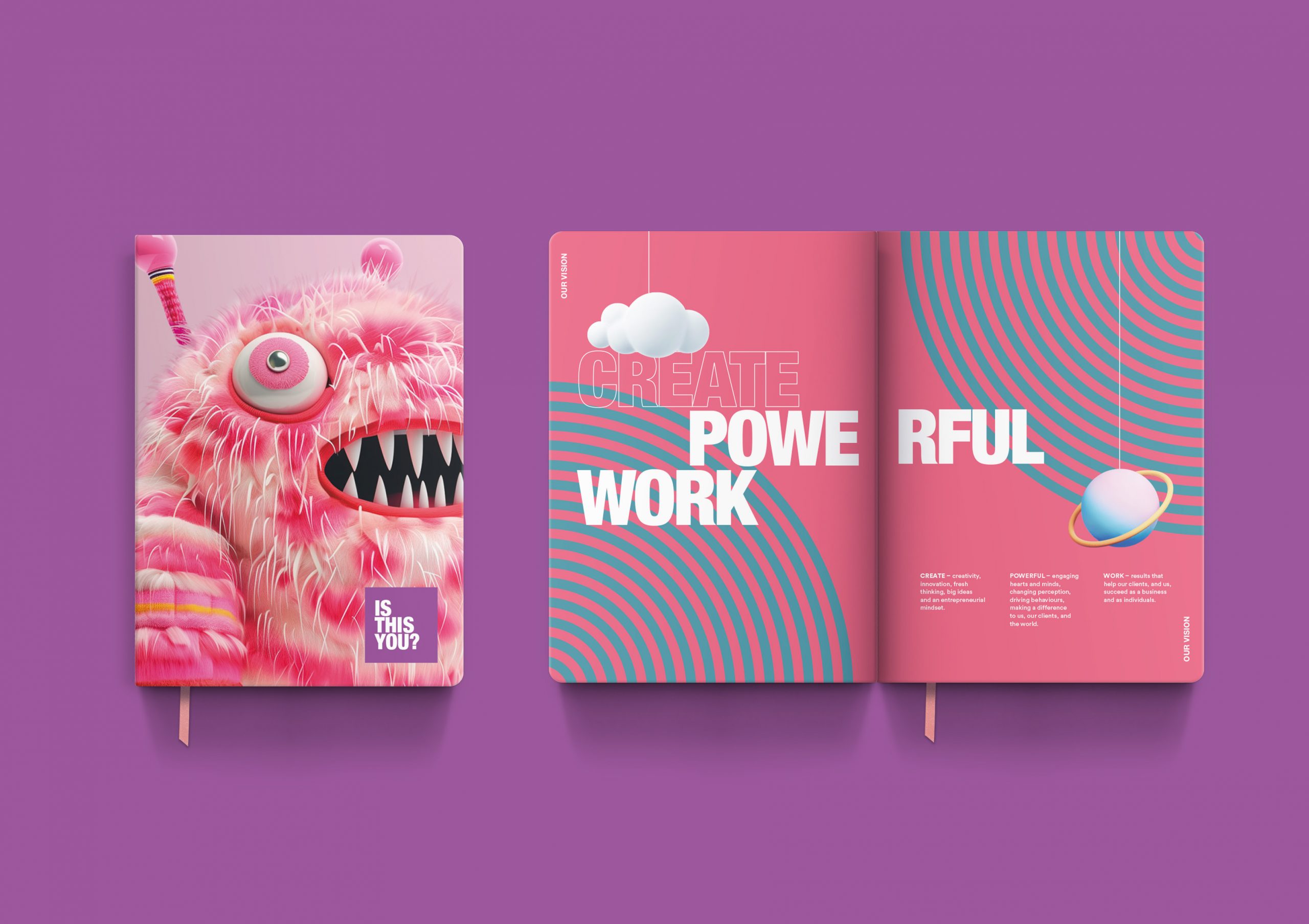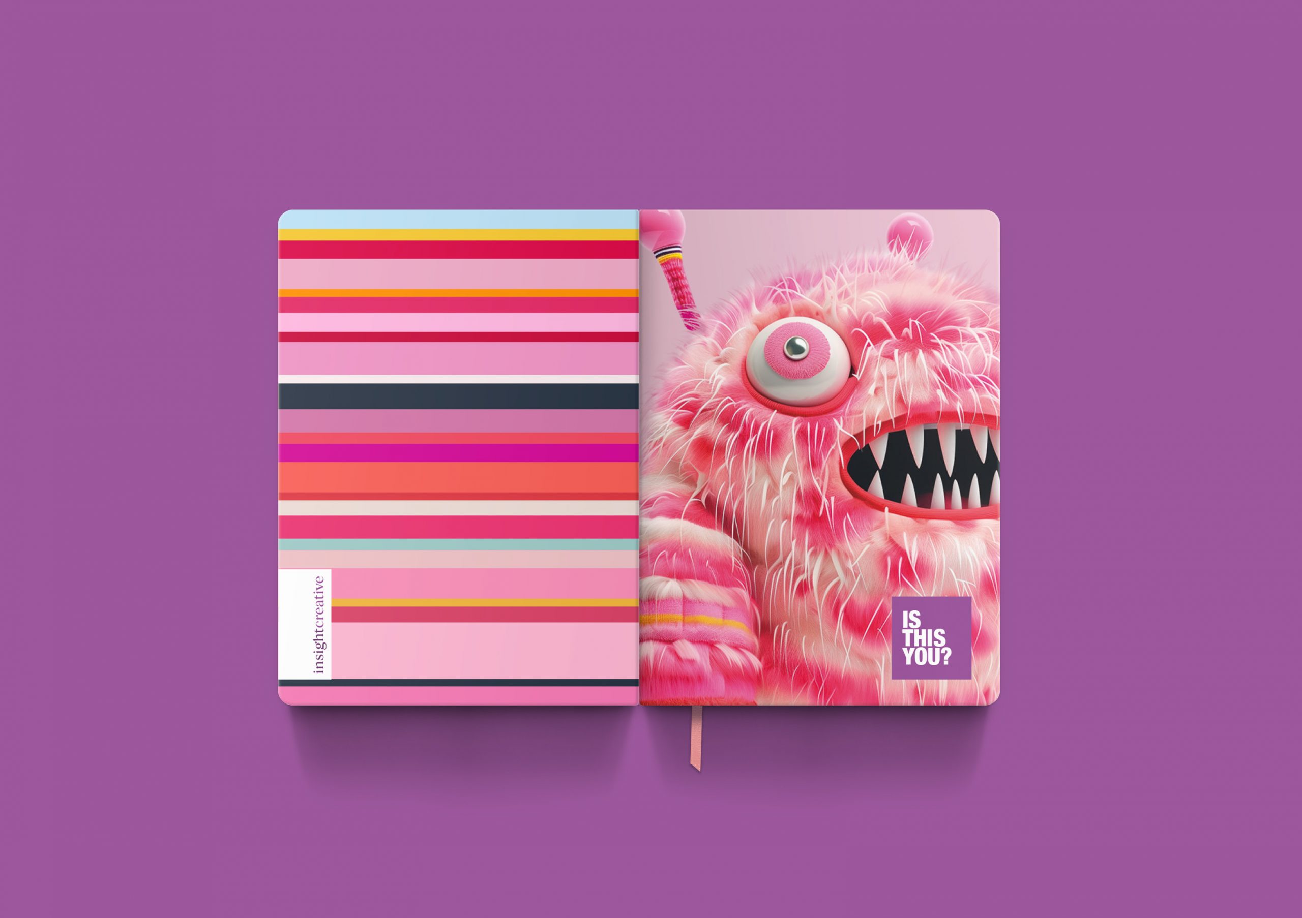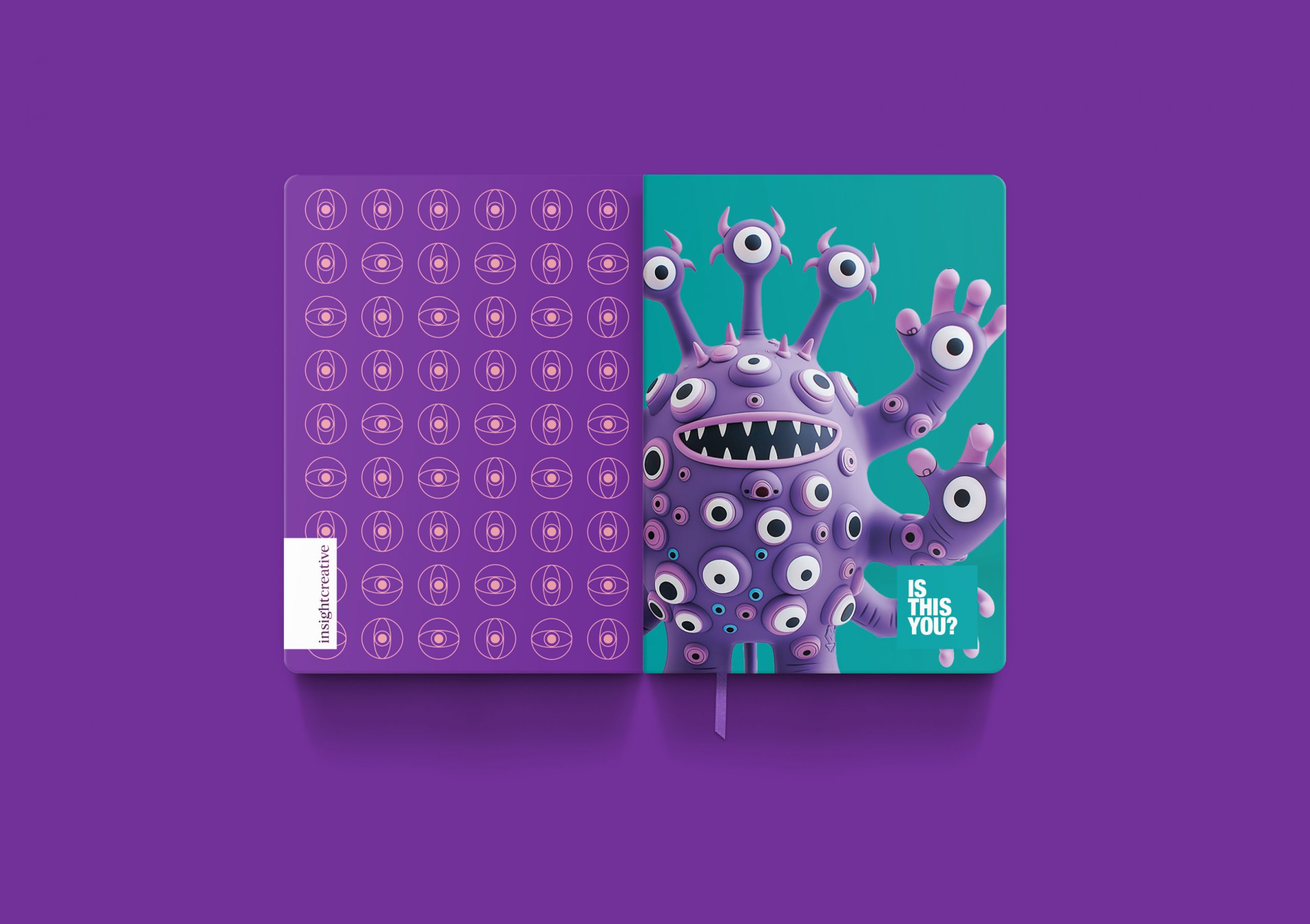 Using MidJourney and Photoshop, we crafted vibrant, tactile, 3D-inspired monsters with distinct colour palettes and creative auras. They helped express a key insight: the more you understand something, the less scary it becomes. These characters were applied across strategy comms—from presentations to posters, notebooks, and internal merch.