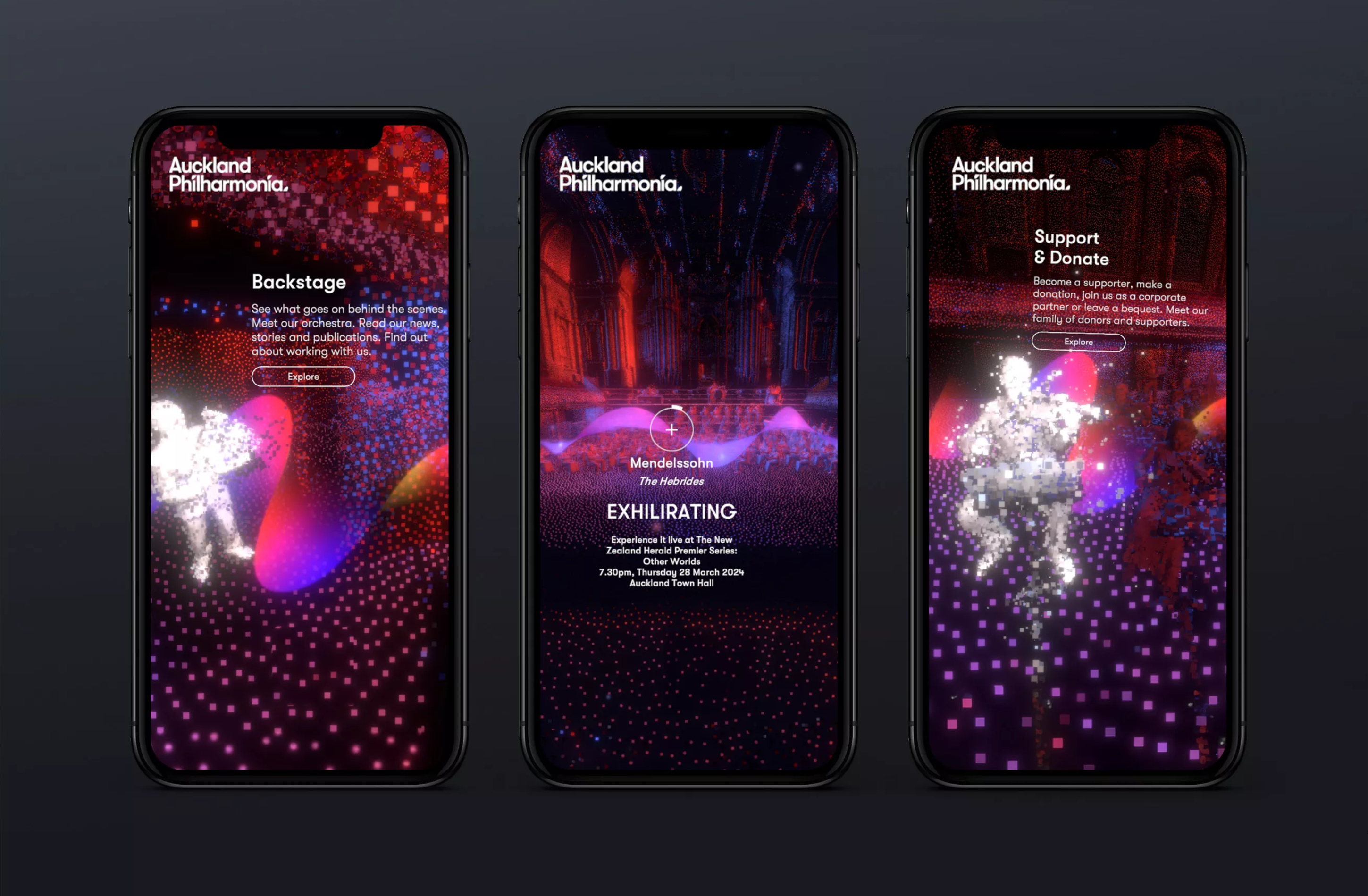 We created an immersive digital experience for the Auckland Philharmonia that captures the emotional power of live performance. Inspired by their brand promise “Let us move you,” the website invites visitors into a virtual concert hall using 3D visuals, spatial sound, and interactive storytelling.
